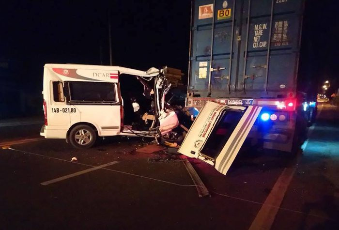 Theo đó, chiếc xe ô tô khách 16 chỗ mang BKS 14B-02180 đang chạy theo hướng Hạ Long – Hà Nội thì tông thẳng vào đuôi xe đầu kéo mang BKS 15C-14542, BKS rơ moóc – 15R-10548 đang đỗ ven đường. Cú tông mạnh khiến 10 người bị thương, trong đó có 3 người bị thương nặng.