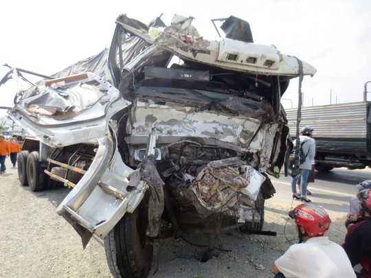 Công an huyện Cam Lâm cho biết xe khách BKS 18N 3541 chạy hướng Bắc – Nam tông trực diện với xe tải BKS 76K 3312 đang chạy hướng ngược lại.