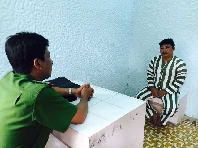 | Cán bộ điều tra làm việc với tài xế Phạm Văn Phương. Ảnh cơ quan công an cung cấp |