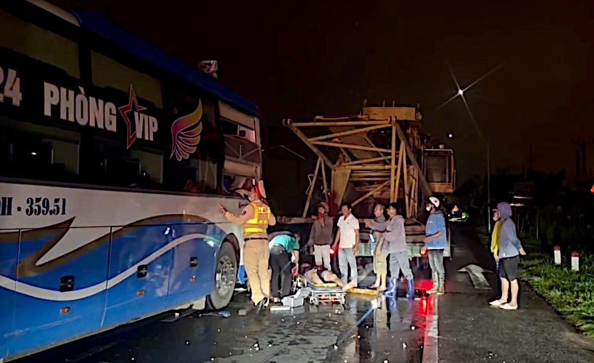 Vụ tai nạn xảy ra lúc 2h45 sáng 16/10, xe khách giường nằm biển số 50H - 359.51 chạy hướng Bình Thuận - Đồng Nai, trên xe có khoảng 20 hành khách. Khi đến Km1710 + 600 qua xã Hàm Mỹ (tỉnh Bình Thuận) thì tông vào thanh cần cẩu trên rơ-mooc biển số 73R - 005.26 của xe đầu kéo 73H - 000.33.