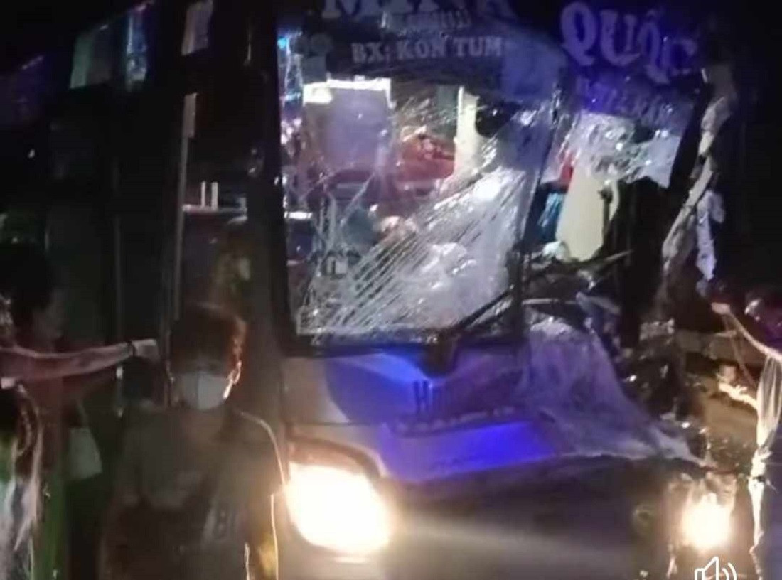 Trước đó, lúc 16h45 ngày 13/4, ô tô khách BKS: 50H-36598 do tài xế Nguyễn Tấn Khoa (26 tuổi, trú tỉnh Bình Định) điều khiển chạy trên Quốc lộ 24 theo hướng huyện Kon Rẫy đi TP Kon Tum.