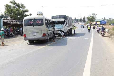 Vào thời điểm trên, xe ô tô khách BKS 53S– 8992 do tài xế Huỳnh Thế Hiển điều khiển theo hướng TP.HCM - Buôn Ma Thuột đến địa điểm trên thì xảy ra va chạm cùng xe tải 47C-08799 do tài xế Dương Phú Tấn điều khiển lưu thông ngược chiều.