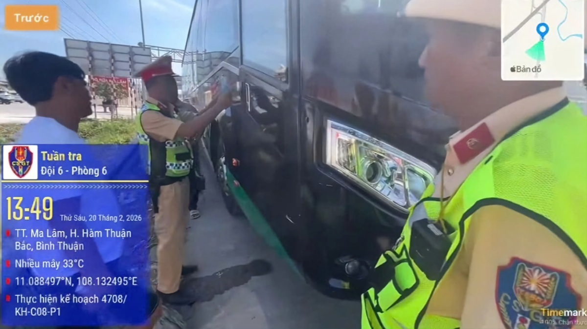 Ngày 21/2, Tổ Cảnh sát giao thông thuộc Đội 6, Phòng 6, Cục Cảnh sát giao thông cho biết, trong quá trình kiểm soát xe kinh doanh vận tải trên cao tốc Phan Thiết – Vĩnh Hảo, đơn vị đã phát hiện và xử lý một ô tô khách 36 chỗ vi phạm hàng loạt quy định.