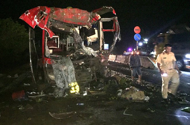 Theo thông tin ban đầu, vào thời điểm trên, xe giường nằm biển số Quảng Nam (chưa rõ người điều khiển) chạy theo hướng nam - bắc. Khi đến đoạn đường trên, xe khách bất ngờ va chạm với ôtô đầu kéo biển số Bình Dương chạy phía trước đang rẽ sang đường.