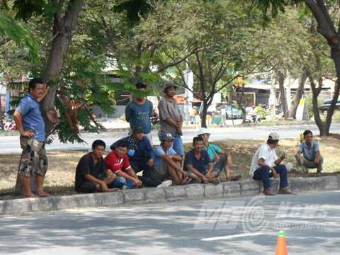 | Nhiều tài xế, chủ xe ngồi chờ đến lượt mình. Ảnh: Huy Phan |