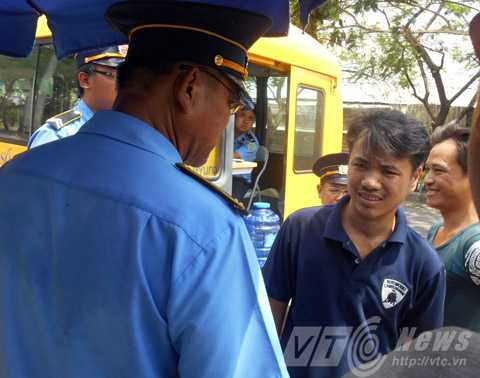 | Một chủ xe bị Thanh tra GTVT nhắc nhở vì lánh mặt không chịu ra ký vào biên bản vi phạm mà đùn đẩy qua tài xế của mình. Ảnh: Huy Phan |