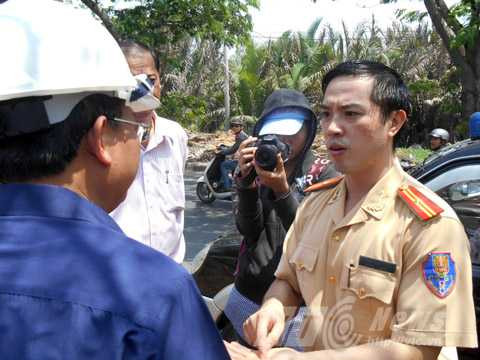 | Lãnh đạo Sở GTVT có mặt trực tiếp tại hiện trường chỉ đạo công việc. Ảnh: Huy Phan |