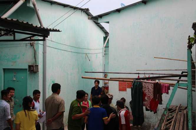| Hiện trường phòng trọ của nạn nhân nằm cuối dãy phòng trọ gồm nhiều phòng. ẢNH: BÁ SƠN |