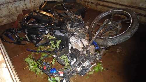 | Xe máy bị hư hỏng hoàn toàn sau cú tông trực diện |