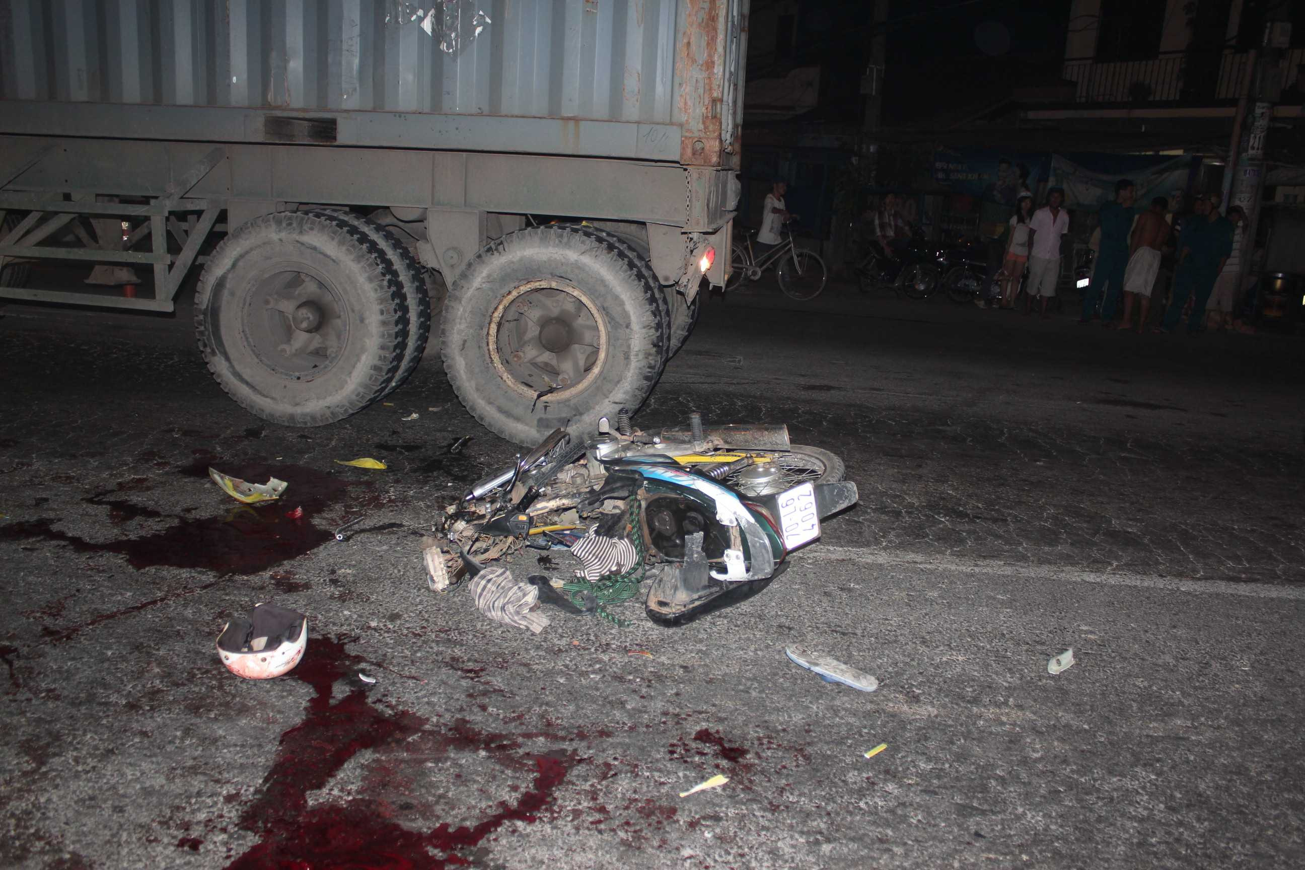 Tại hiện trường, chiếc xe máy bị hư hỏng nặng, biến dạng, nhiều bộ phận bị bể nát, văng xa hiện trường nhiều mét. Ngoài ra trên mặt đường xuất hiện nhiều vũng máu chảy tràn.