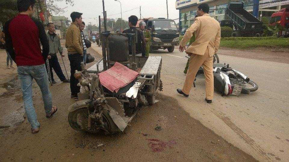 Một người dân chứng kiến vụ việc cho biết, xe ba gác tự chế của anh Nguyễn Quyết Thái đang lưu thông trên phần đường của mình thì bị xe Wave biển kiểm soát 29-X1, 26849 của anh Nguyễn Xuân Vang đi ngược chiều với tốc độ cao đâm phải.