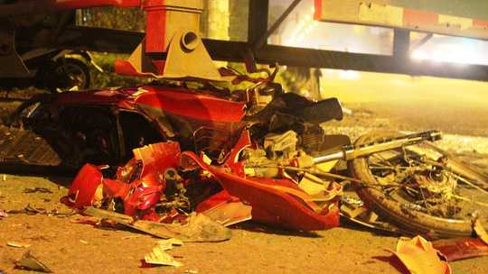 | Chiếc xe máy vỡ vụn sau va chạm |