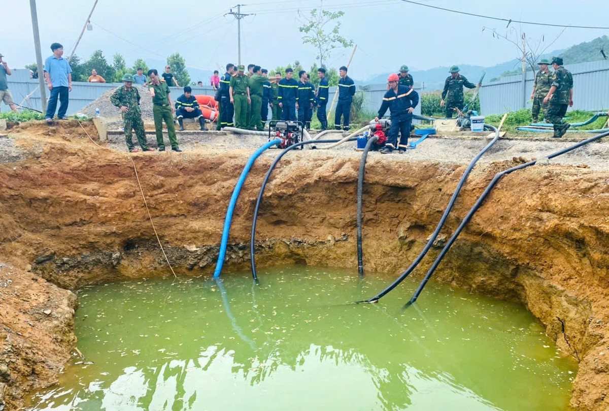 Lực lượng chức năng lắp đặt một máy bơm lớn cùng 4 máy bơm dã chiến bơm rút nước khỏi hố. Đồng thời, lực lượng bộ đội, dân quân xã Kim Lư phối hợp dùng câu liêm, mỏ sắt lớn để tìm kiếm nhưng vẫn chưa thấy tung tích người gặp nạn.