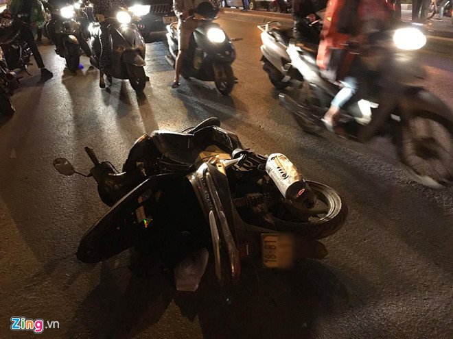 Tại hiện trường, chiếc xe máy nằm cách vị trí nạn nhận khoảng 10m, giao thông qua khu vực bị tê liệt.
