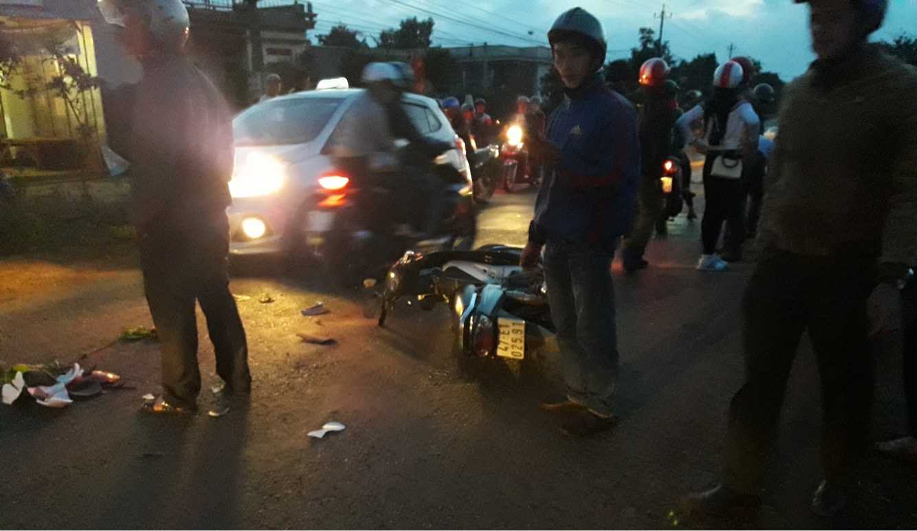 Khi đến địa điểm trên, xe của anh Phố xảy ra va chạm với xe gắn máy mang BKS: 47E1- 02591 đang lưu thông cùng chiều. Chiếc xe này do anh Phạm Đình Lương (trú tại Thôn Tân Lập, xã Ea Toh, huyện Krông Năng) điều khiển, chở theo vợ cùng 2 con nhỏ.