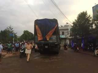 Hiện trường vụ tai nạn xe ô tô tải trước cổng công an thị xã Buôn Hồ - Ảnh: Thanh Hải