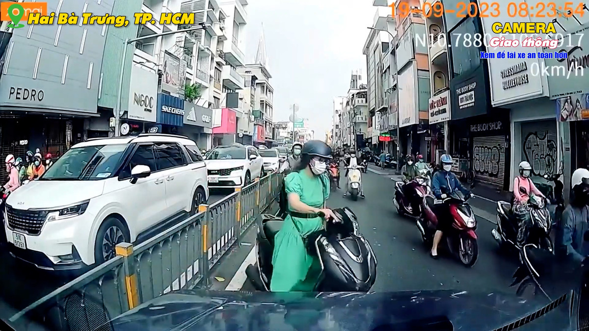 Xe máy ùn ùn đi ngược chiều trên đường Hai Bà Trưng, TP.HCM