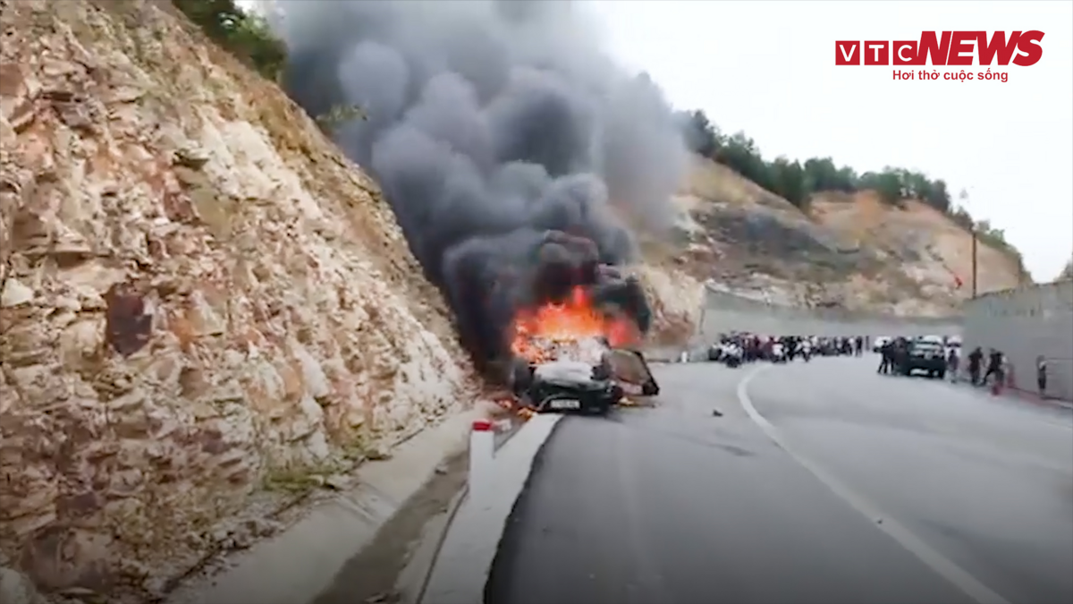 Xe Mazda tông vào vách núi bốc cháy dữ dội, 3 người thương vong