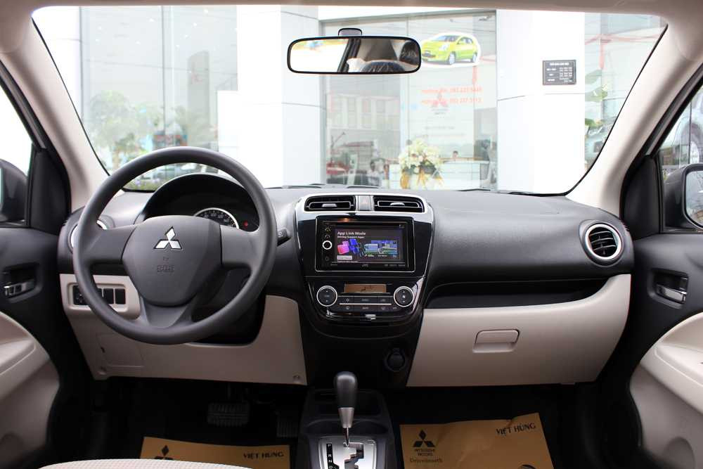 Trong khi đó, Mirage bản tự động sở hữu các trang bị gồm điều hòa tự động một vùng khí, đầu đĩa DVD kèm màn hình cảm ứng LCD, kết nối không dây bluetooth, khe cắm USB và giắc AUX, chìa khóa thông minh, khởi động bằng nút bấm, cửa sổ chỉnh điện, gương chiếu hậu chỉnh điện. Cả hai mẫu xe này đều chỉ được trang bị ghế nỉ và tùy chọn ghế da.