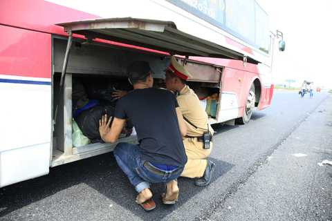 | Khi lực lượng CSGT kiểm tra, nhà xe đã nhanh chóng cho hành khách chạy xuống khỏi xe |