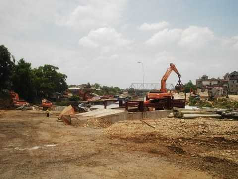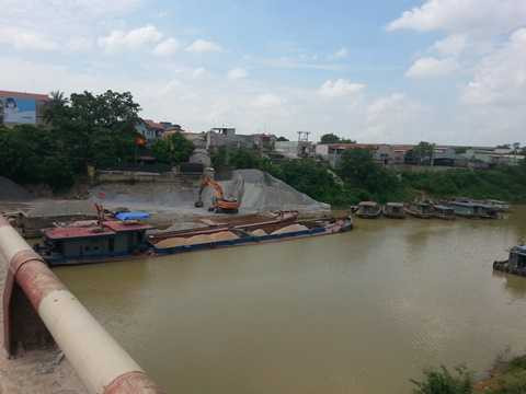 | Bến ông Cầu không có giấy phép nhìn từ phía cầu Đa Phúc |