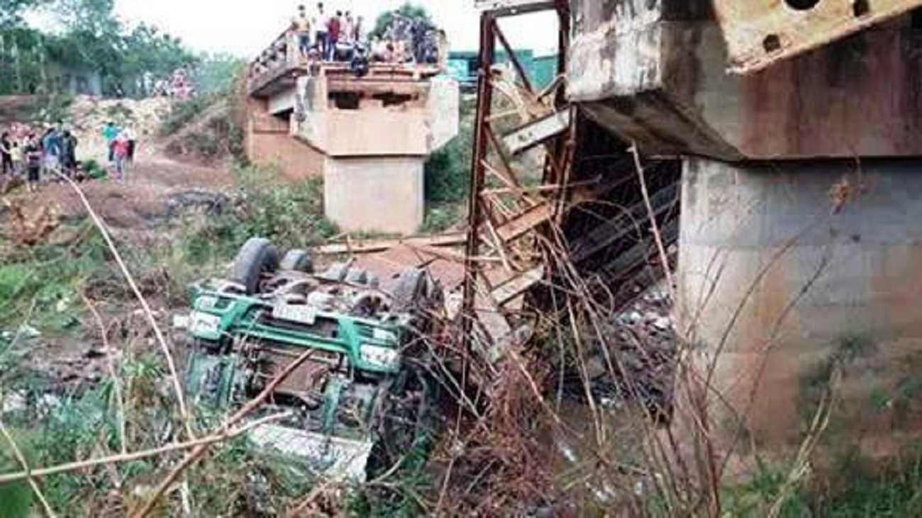 Do tải trọng của cầu chỉ 10 tấn nên khi xe tải đi qua khiến cầu bị sập hoàn toàn rơi nhào xuống sông.