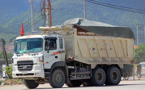Những chiếc xe Hổ Vồ (Howo), Hyundai 3-4 chân đang chở VLXD tại huyện Kỳ Anh đều đã hoán cải thành thùng xe, chở trọng tải gấp 4-5 lần cho phép.