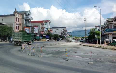 | Góc đường nối QL12C với QL1A luôn bị xe quá tải dầm nát và luôn trong tình trạng sửa rồi lại vá. |