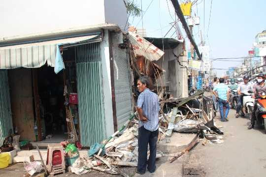 Chiếc xe rác được cho bị mất lái khi đang lưu thông đã bất ngờ lao qua làn đường ngược lại, tông sập 3 căn nhà giữa trung tâm TP HCM.