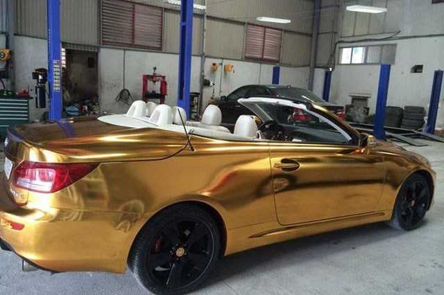 Mới đây, hình ảnh của chiếc xe sang Lexus IS 350C "mạ vàng" của một đại gia tai Hải Phòng gây xôn xao cộng đồng mạng và giới chơi xe tại Việt Nam. Được biết, từ chiếc xe nguyên bản Lexus IS 350C, chủ nhân đã lột xác xế cưng bằng dàn áo dán đề can mạ vàng ấn tượng.