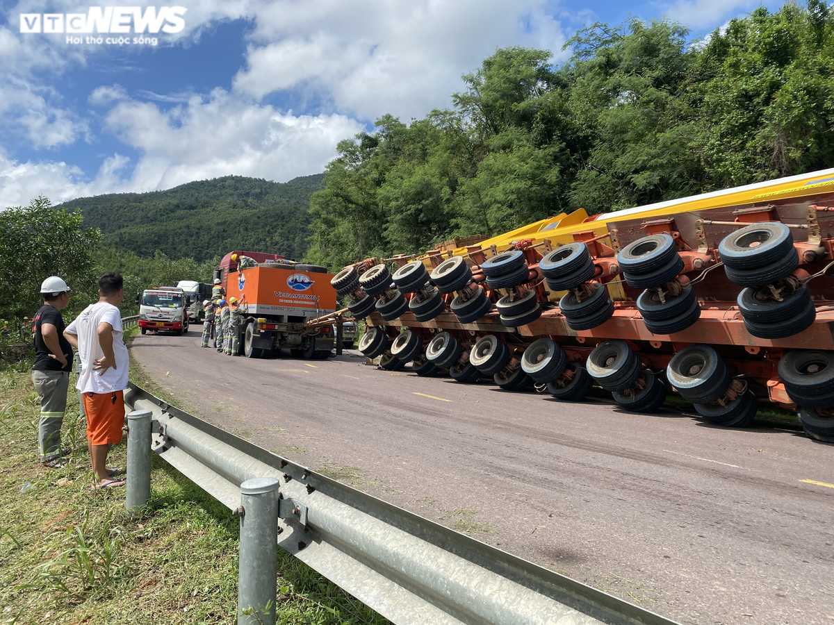 Thời điểm trên, xe đầu kéo 43C-167.34 kéo theo rơ moóc 43R-000.05 chở thiết bị điện gió (cánh quạt điện gió) là hàng siêu trường siêu trọng đi theo hướng Bình Định - Gia Lai. Khi đến vị trí nói trên, xe bất ngờ bị lật về phía bên phải cùng chiều, chắn 1/2 làn đường.