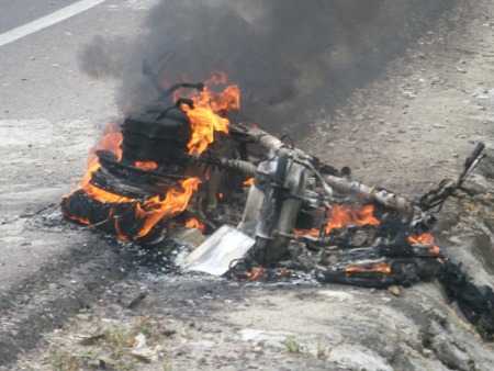 Người điều khiển sợ nguy hiểm nên đã vứt xe bên vệ đường rồi bỏ đi mặc cho xe cháy
