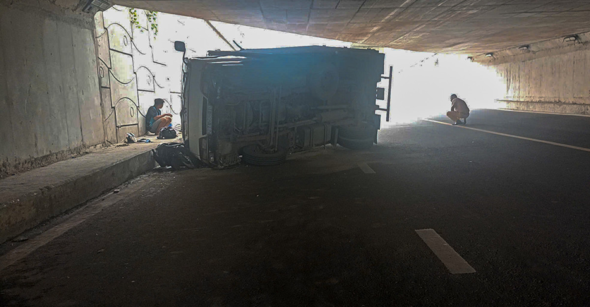 Khi đến gần khu vực cầu vượt Trạm 2, xe tải va chạm với gầm cầu dẫn từ Xa lộ Hà Nội lên đường Đỗ Mười. Cú va chạm khiến chiếc xe tải lật nghiêng ngay dưới gầm cầu, đè trúng hai xe máy đang lưu thông cùng chiều.