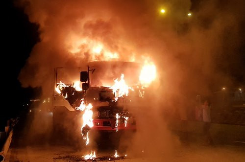 Tài xế liền tấp xe vào lề cùng hai người đi cùng nhảy ra thoát nạn. Chỉ trong phút chốc, lửa bao trùm cabin, cháy ngùn ngụt kèm khói đen bốc cao. Khoảng 30 phút sau, tài xế cùng người dân đã khống chế được ngọn lửa, tuy nhiên cabin xe đã bị thiêu rụi.