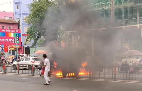 Khi đến gần giao lộ Lê Hồng Phong (quận 10), thì chiếc xe này bốc cháy ngùn ngụt.
