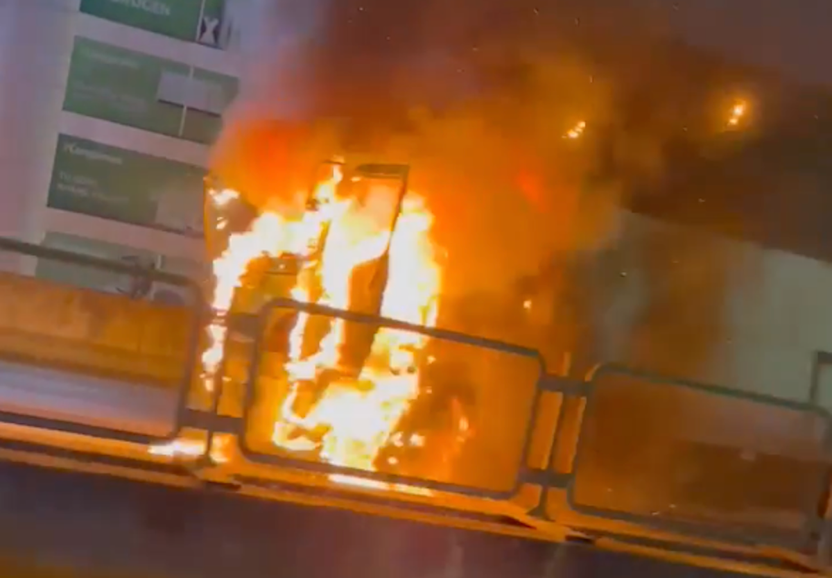 Phát hiện sự việc, tài xế ô tô nhanh chóng dừng xe và thoát khỏi cabin. Ngọn lửa sau đó bùng lên nhanh, cột khói đen bốc cao hàng chục mét, bao trùm chiếc xe đang đỗ ở làn đường sát dải phân cách.