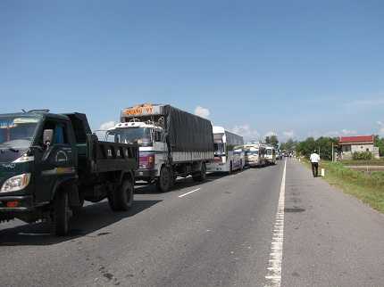 Hậu quả khiến các phương tiện giao thông qua đoạn đường trên bị ách tắc, không thể lưu thông. Hàng trăm xe ô tô cùng các phương tiện đã bị ách tắc trên quãng đường dài hơn 5km.