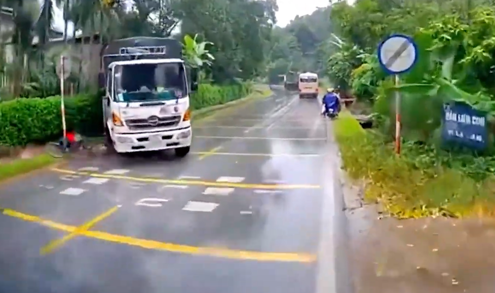 Xe tải chạy tốc độ cao dưới trời mưa, tông văng người đi xe đạp
