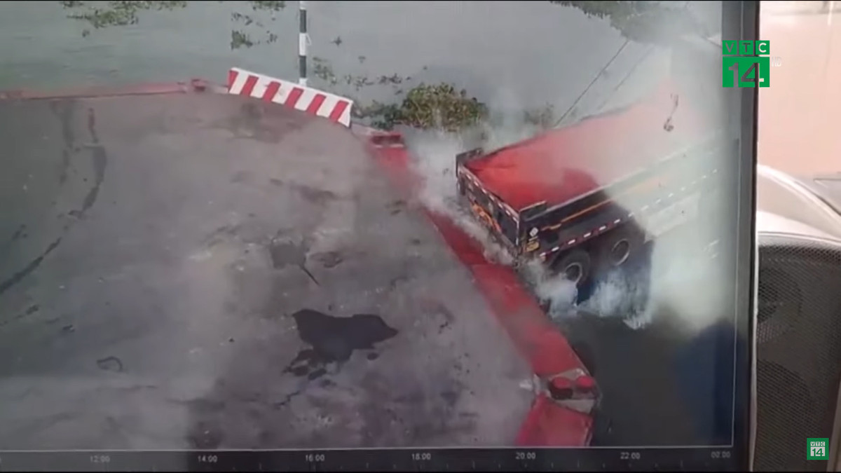 Xe tải chở 16 tấn bê tông rơi xuống sông