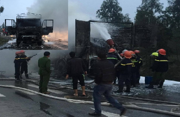 Thông tin ban đầu, khoảng 5h30' ngày 10/2, xe tải mang BKS 43S-8896 do tài xế Nguyễn Chính Công (SN 1977, trú Đà Năng) điều khiển chở bàn ghế theo hường Bắc - Nam. Khi đến km 484 quốc lộ 1A thuộc địa phận phường Đậu Liêu, thị xã Hồng Lĩnh (Hà Tĩnh) thì xe bất ngờ bốc cháy dữ dội.