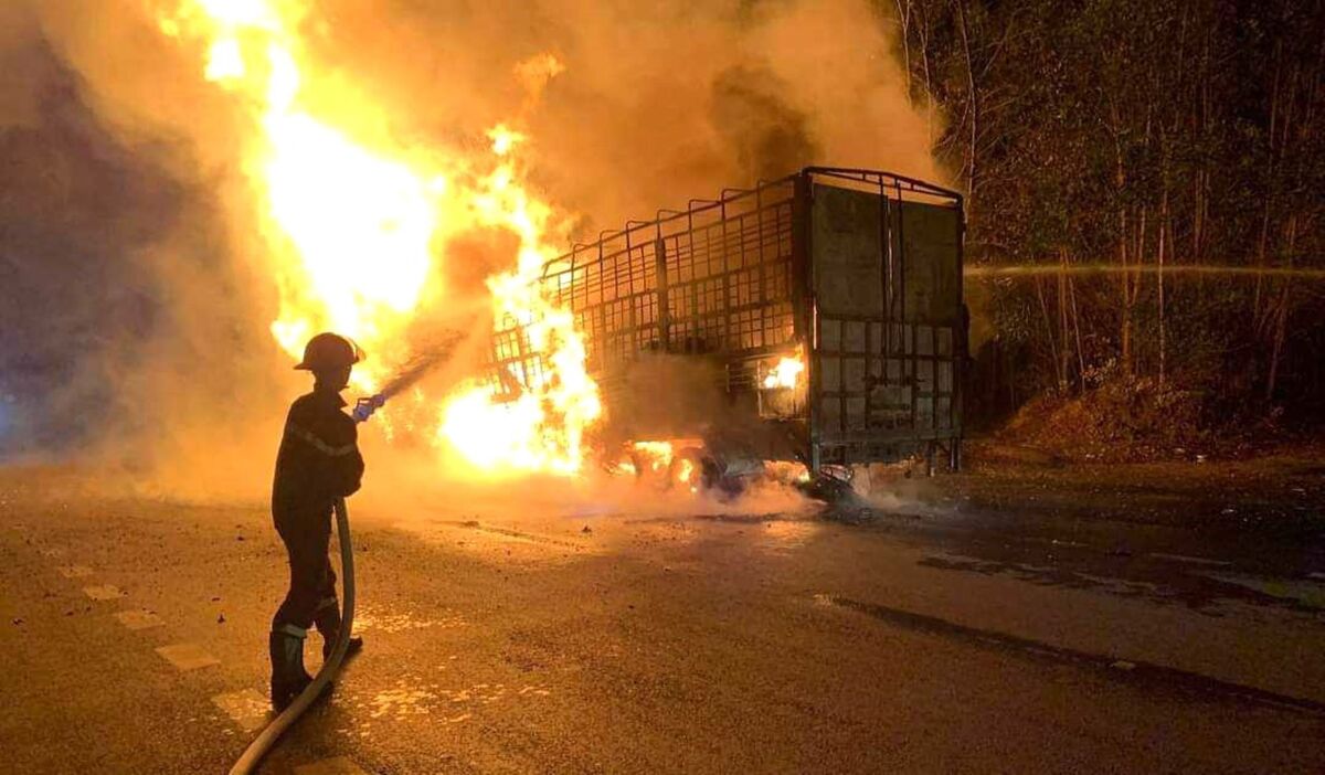 Do trên xe chở bánh kẹo và các cuộn ni lông nên lửa bùng phát dữ dội và phải mất 20 phút sau lực lượng chữa cháy mới dập được lửa.