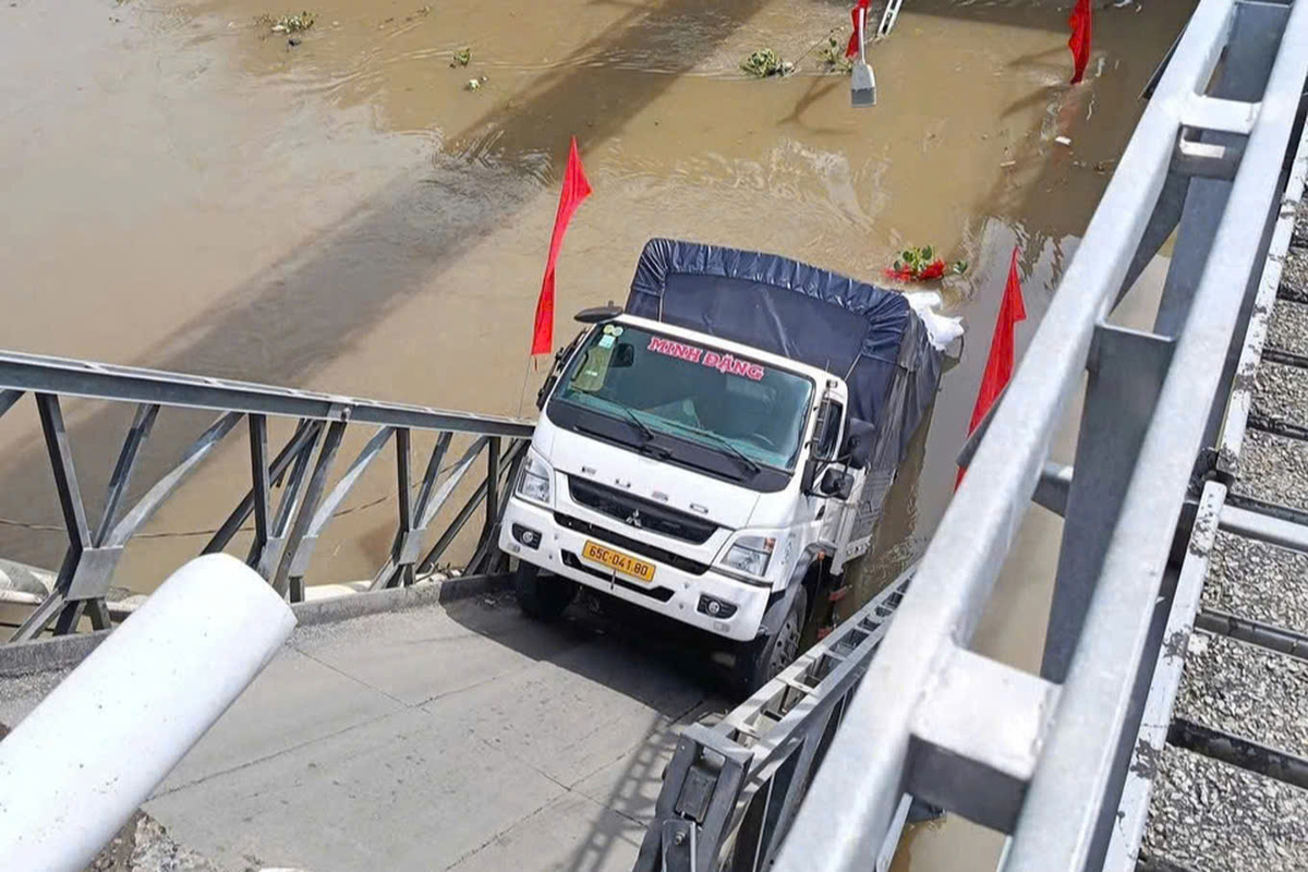 Sáng 28/2, xe tải chở 8,2 tấn gạo lưu thông qua cầu 30 tháng 4 - tuyến nối tỉnh lộ 921 và đường Nguyễn Trọng Quyền TP Cần Thơ, đã gây sập luồng giữa dành cho xe 4 bánh.