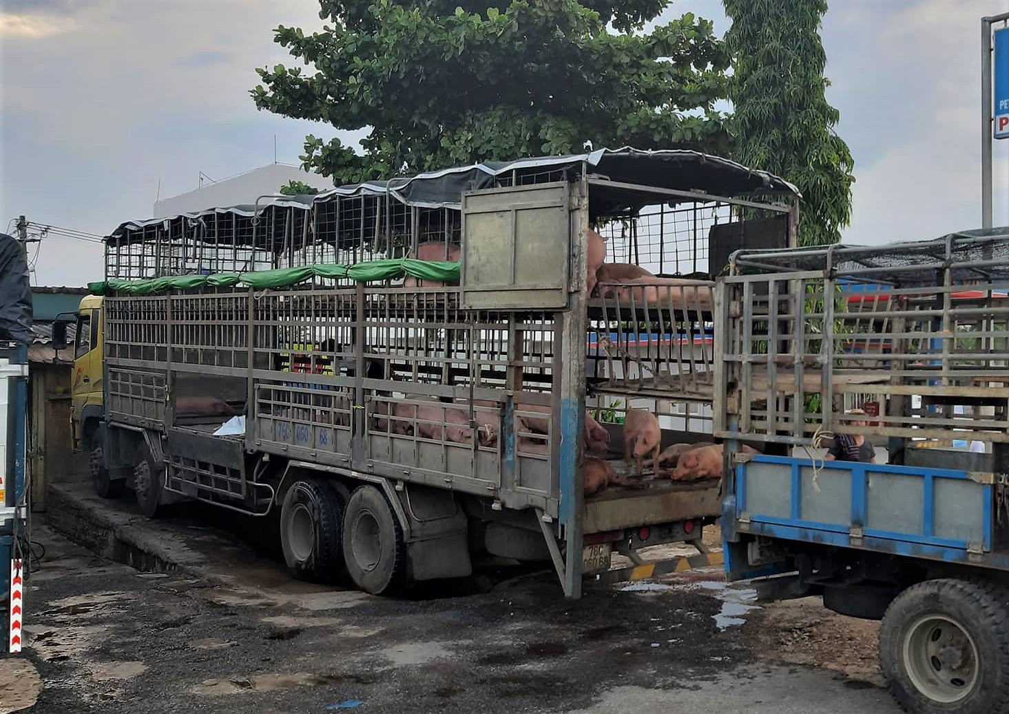 Chiếc xe tải chở lợn nhiễm virus dịch tả lợn châu Phi từ Bắc Ninh vào Quảng Nam bày bán.