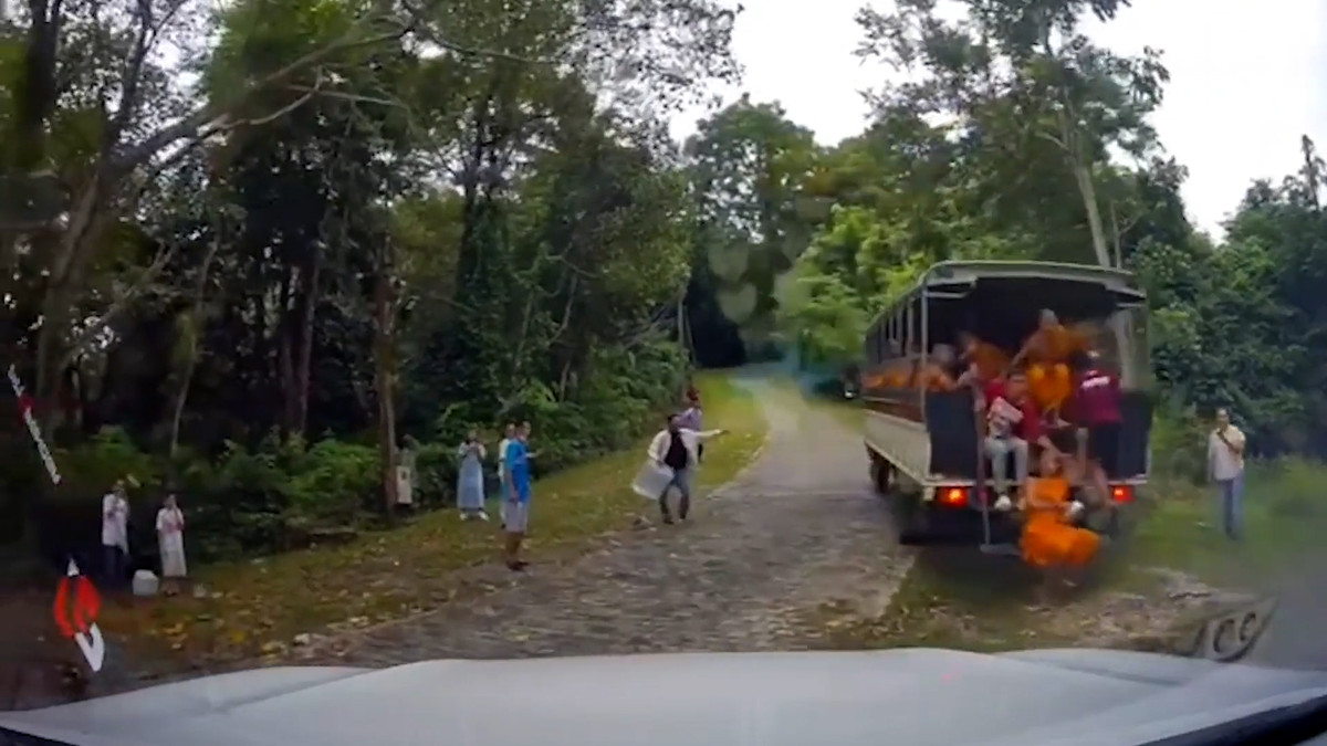 Chiếc xe tải chở hàng chục nhà sư lên dốc không thành, chiếc xe bị tụt dốc mất kiểm soát khiến mọi người hoảng sợ, sự việc xảy ra tại Thái Lan.