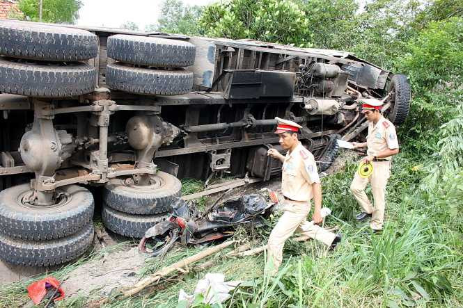 Cú tông mạnh khiến ba người trên xe máy chết tại chỗ, còn tài xế xe tải bị kẹt trong buồng lái. Người dân gần đó phải đập buồng lái kéo anh Toản ra ngoài rồi đưa đi cấp cứu. Ở đuôi xe tải có một mảnh vải màu đỏ mang dòng chữ “kiểm soát quân sự”.