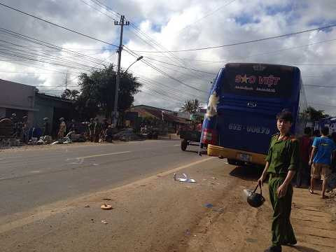 Nhận được tin báo, lực lượng CSGT thị xã Buôn Hồ đã có mặt để phân luồng giao thông và làm rõ nguyên nhân vụ tai nạn.