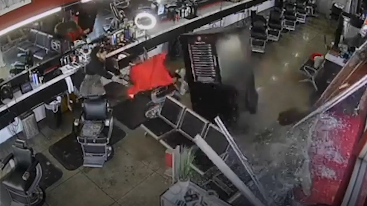 Chiếc xe tải đâm vào tiệm cắt tóc ở Hollywood, may mắn là không ai bị thương.