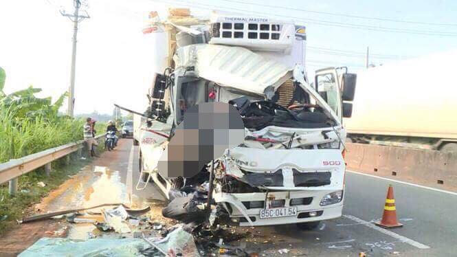 Đến vị trí xe đầu kéo đang đỗ, xe tải tông mạnh vào xe đầu kéo khiến anh Thi chết tại chỗ, thi thể kẹt trong cabin.