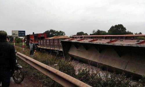 (VTC News) - Nhiều toa tàu hàng đã bị lật khi đâm vào một chiếc xe tải tại khu vực tỉnh Bắc Giang.