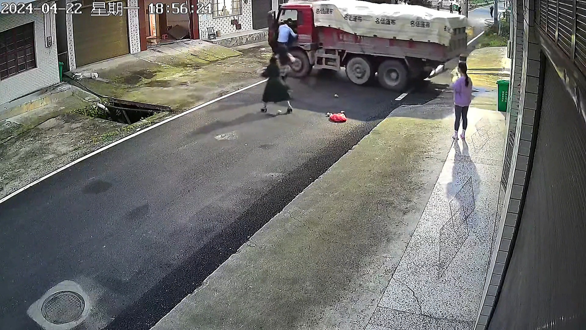 Chiếc xe tải không người lái bất ngờ di chuyển, lao vào nhà dân khiến nhiều người hoảng sợ tại TP Hàm Ninh (Hồ Bắc, Trung Quốc).